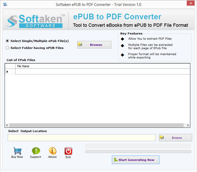 Softaken EPUB to PDF Converter appears with a simplified user interface when it is launched on the system. Here is the opening interface of the utility