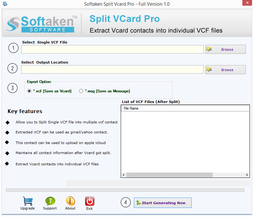 | Start Generating Now | use this option to Start Splitting Process. |