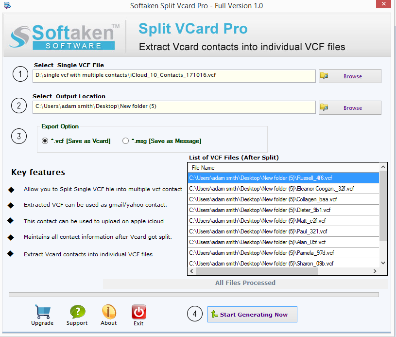 Export Options Two options are provided by the application to save VCF split file